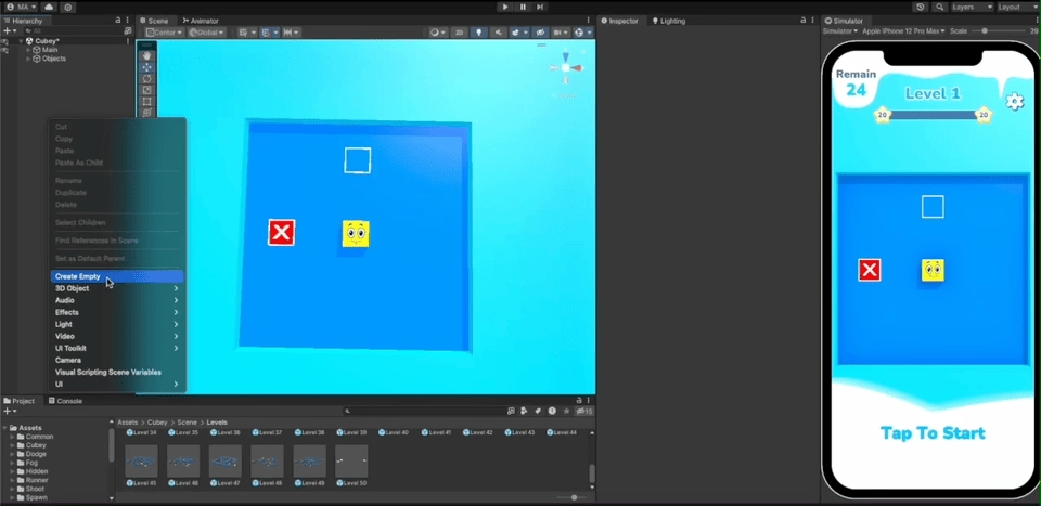 Cubey template is a complete project with full custom game settings, UI Control, and an audio system. This template contains 50 well-built Levels plus a custom-quick way to build and test new levels.